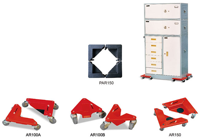 ● 此车基本用于搬运矩形货物 ● 机动性强,用于无法使用大型搬运设备的场所 ● 用千斤顶翘起货物一角.将此搬运器放在下面.如此重复每一角 ● 载物表面带橡胶垫用于保护货物 ● AR100A和AR100B是铝制的 ●AR150是钢制的 ● 搬运车的3个脚轮都为万向角轮,转向灵活 ● 成套(4个)销售