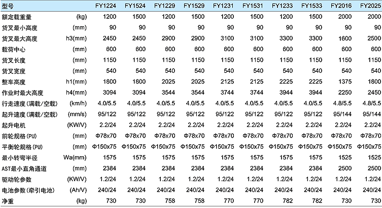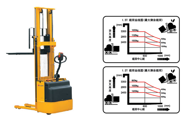 ● 独特的双油缸设计.增强载重能力的同时提高了视野宽度 ● 采用进口泵站,使货物起升平稳有力 ● 进口驱动轮,配置可靠的盘式刹车系统,动力强劲,性能稳定 ● 进口电控系统反应灵敏.操作自如 ● 大容量牵引电池,充电方便快捷,电量持久,带电量显示表,低电压报警灯 ● 特殊轧制工艺制造的“C”型钢门架,坚固安全 ● 带有低电压保护功能,在蓄电池电压短时间低于规定电压时,低电压保护功能可保证电池及电器元件的安全。 ● 符合欧洲EN1757-1:2001,ENl727标准 ● 必须严格按照堆高车的载荷曲线图中所允许的剩余载荷进行操作,严禁超载使用,确保安全