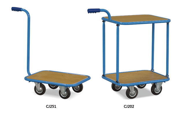 ● 单柄手把 ● 两个万向角轮带刹车,两个定向轮,材质:橡胶轮