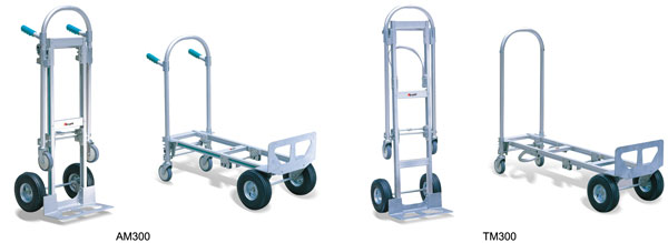 ● 通过脚踩踏板快速把2轮推车变成4轮平台推车